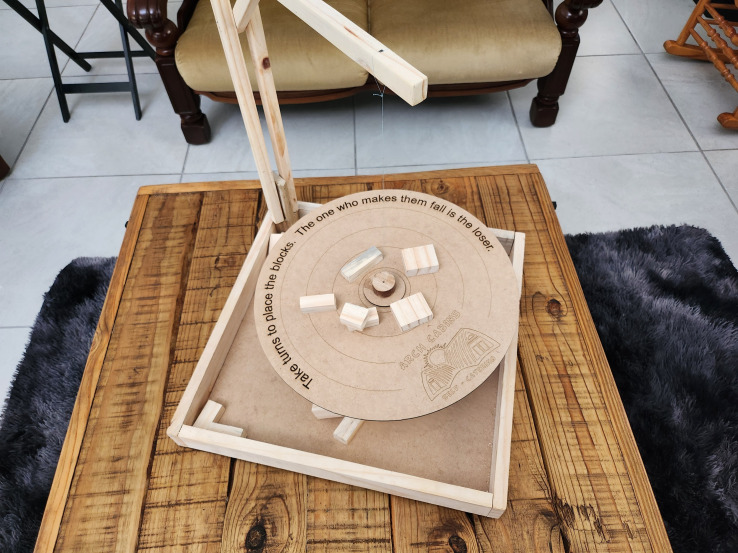 Imagine a game where gravity is your biggest enemy and steady hands determine victory. It's a balancing showdown—small wooden blocks teeter on a swinging disk, and one wrong move could send everything crashing!